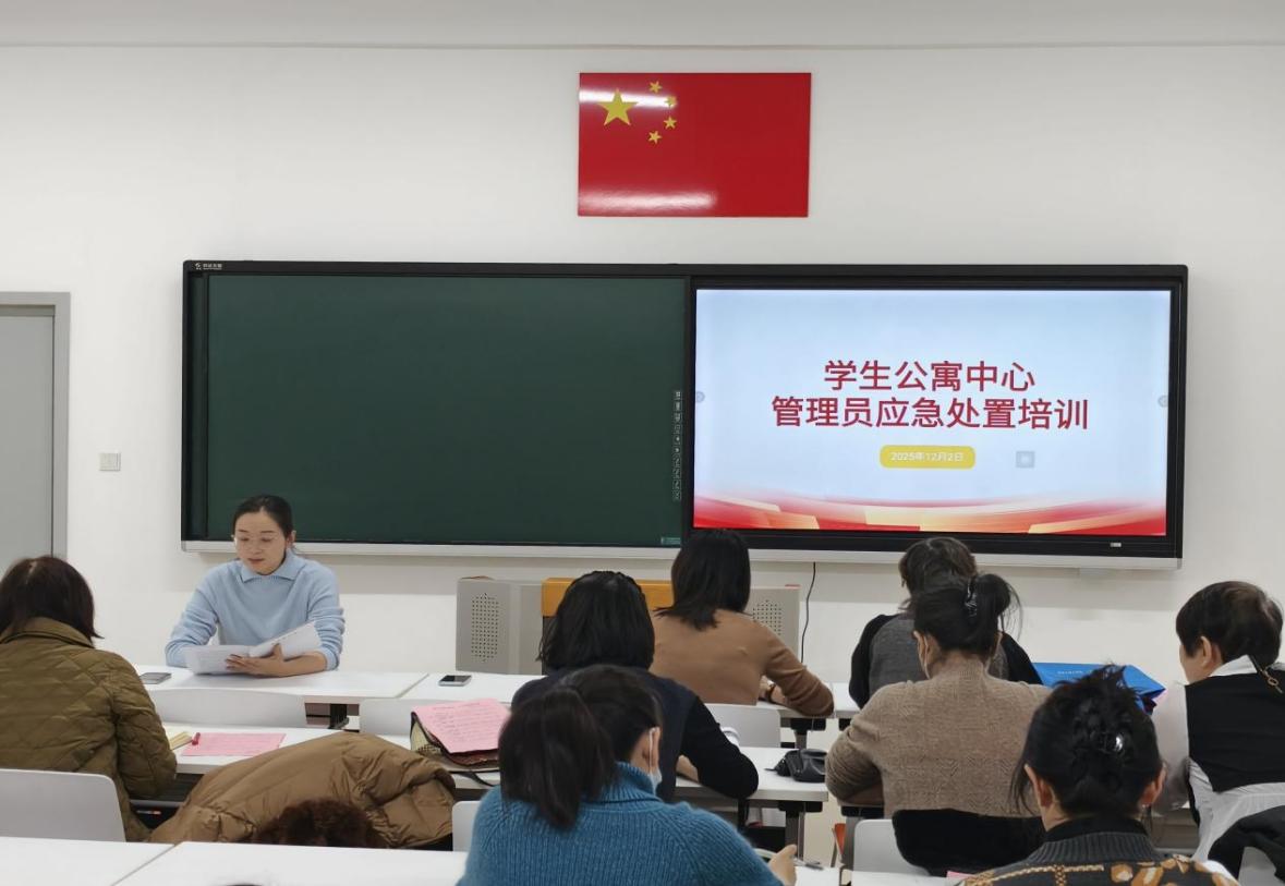 筑牢安全防线,保障宿舍安全 ----学生公寓中心开展应急处置培训 为进一步提升学生公寓管理员的应急处置能力,切实保障校园住宿安全,12月2日,学生公寓中心组织全体管理员开展了应急处置培训。 培训采用理论讲解与实操演练相结合的方式,在理论培训阶段,公寓中心负责人围绕公寓日常安全管理、突发事件应急响应流程等内容进行了系统讲解,明确了管理员在各类突发情况中的职责与处置要点。 随后,安全保卫处消防科高峰老师带领管理员们来到公寓楼内的消防设施区域,开展实操教学,现场演示了灭火器的使用方法及火灾逃生注意事项。 此次培训将理论知识与实际操作相结合,有效强化了公寓管理员的安全责任意识和应急处置技能,接下来,公寓中心将定期开展此类培训,持续提升管理队伍的专业素养和实战能力,为营造安全、稳定、和谐的学生住宿环境提供坚实保障。(学生公寓服务管理中心)