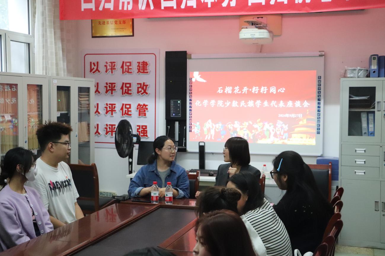 单丝不成线,独木难成林,化学学院始终重视少数民族学生工作,通过举办座谈会等形式,了解学生需求,切实解决实际问题,让少数民族学生感受到学院的关心与关怀,进一步铸牢中华民族共同体意识,将民族团结教育融入思想政治教育全过程。